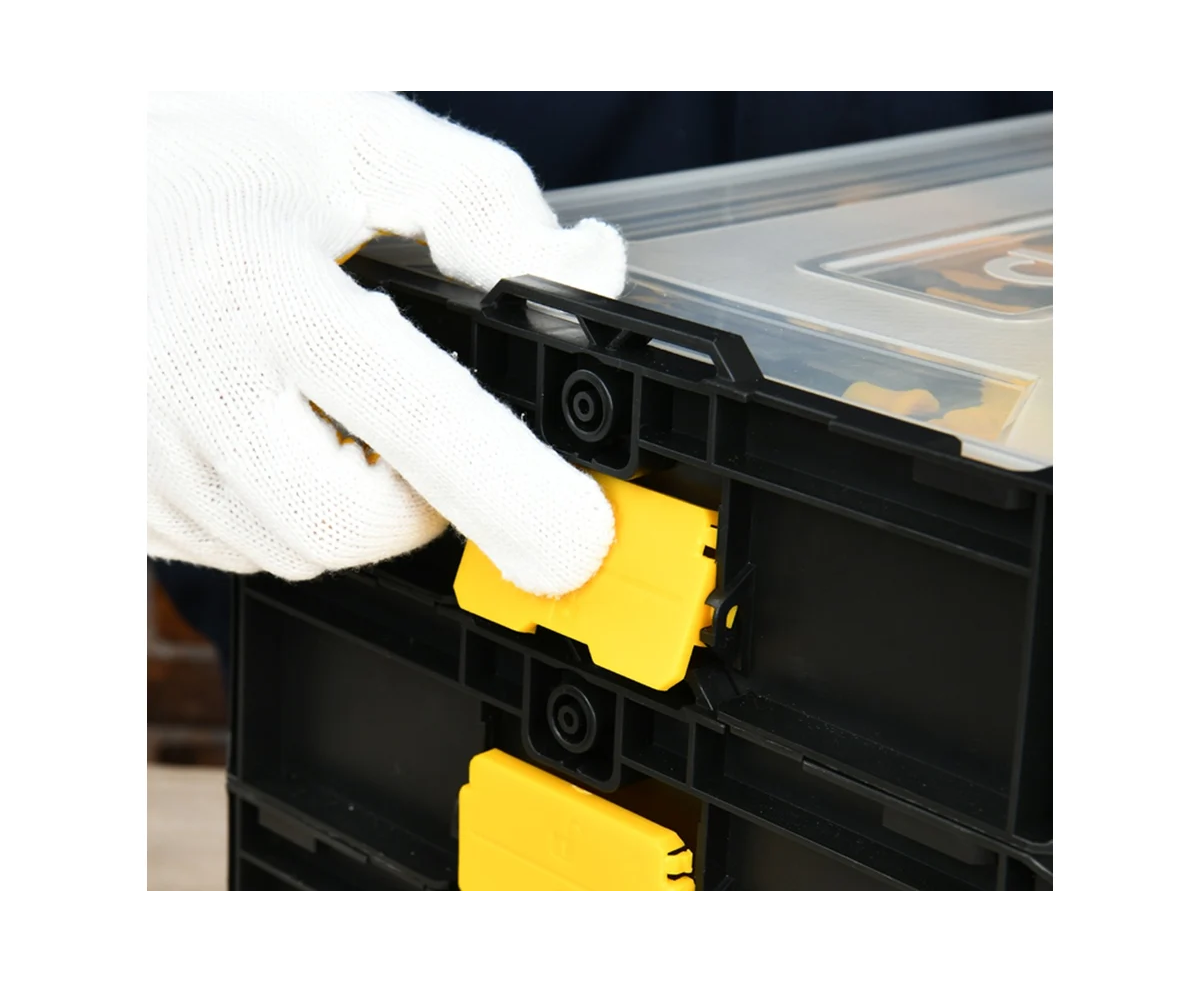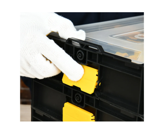 - Модульная система хранения - органайзеры соединяются между собой при помощи надежных пластиковых замков, позволяя создавать многоуровневые системы хранения.