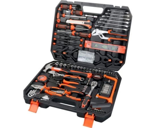 Набор инструментов для дома Gigant GNJ-168 содержит многообразие специализированных ключей и слесарных инструментов, что дает возможность решать любые бытовые задачи и проводить другие работы – сборочные, наладочные, ремонтные. Набор будет незаменим при ремонте и обслуживании автомобиля.