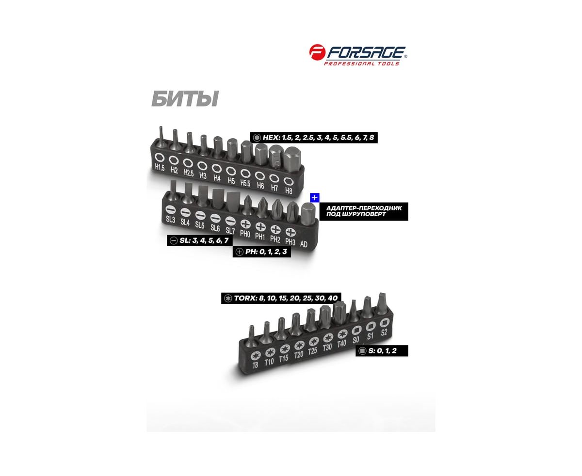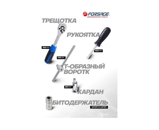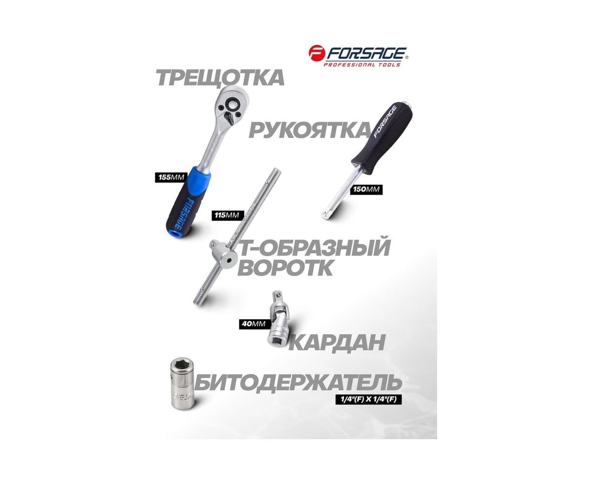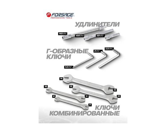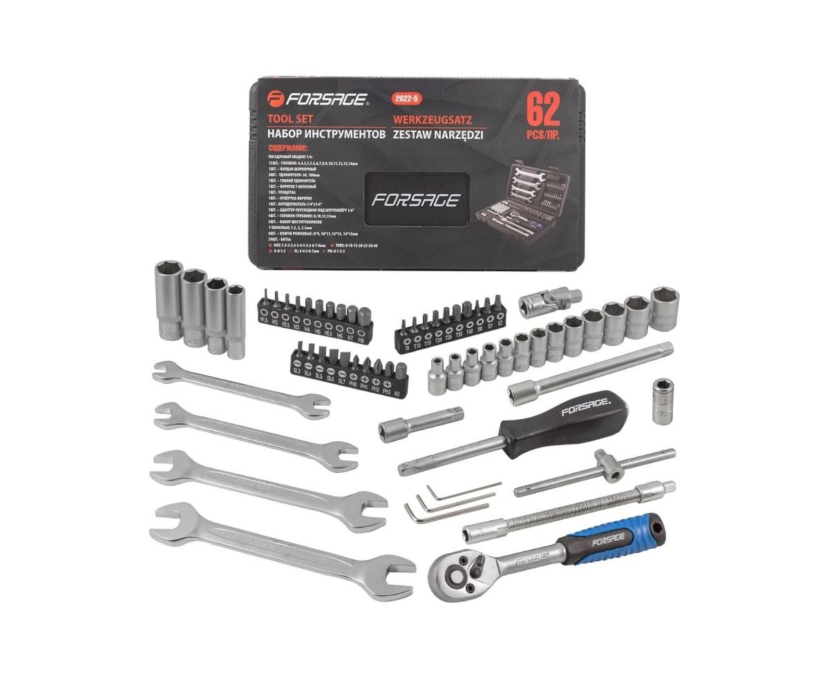 Набор инструментов Forsage — это универсальный комплект, созданный для решения широкого спектра задач, от слесарных и монтажных работ до обслуживания автомобиля и бытовой техники. Независимо от того, требуется ли вам быстрое устранение неисправностей на дороге, дома или на даче, этот набор станет незаменимым помощником!