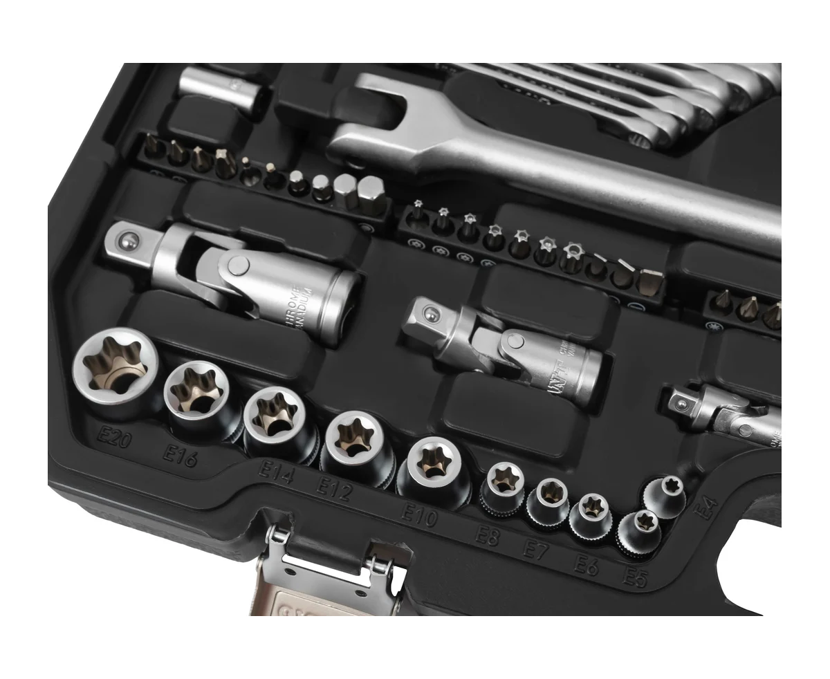 Набор инструмента Gigant 1/2, 1/4 и 3/8 дюйма с 6-гранными головками, 142 предмета GAS-142 - это универсальный комплект, идеально подходящий для ремонта на СТО, в мастерских, на производстве, в гараже, в дороге, на даче и дома. Благодаря высококачественным материалам и эргономичному дизайну, инструменты обеспечивают надежность и долговечность в использовании. Набор включает посадочные квадраты 1/4", 3/8" и 1/2", а также различные типы головок, включая шестигранные, E-профиль и короткие. Удобный пластиковый кейс обеспечивает легкость хранения и транспортировки, что позволяет всегда иметь все необходимые инструменты под рукой.
