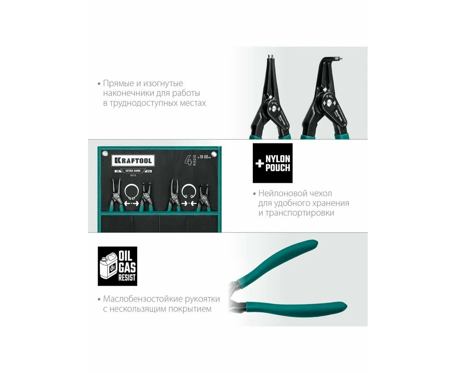 Технические характеристики набора съемников KRAFTOOL 22812-H4