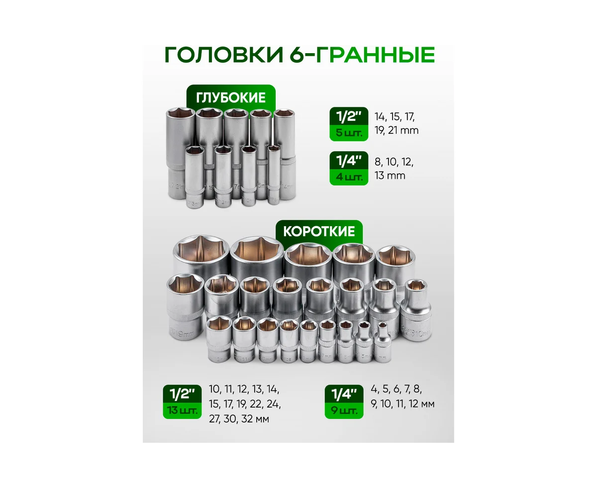 Глубокие головки, мм: 8, 10, 12, 13