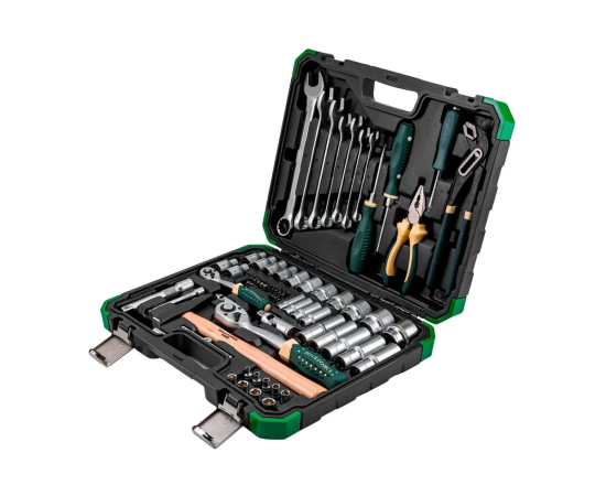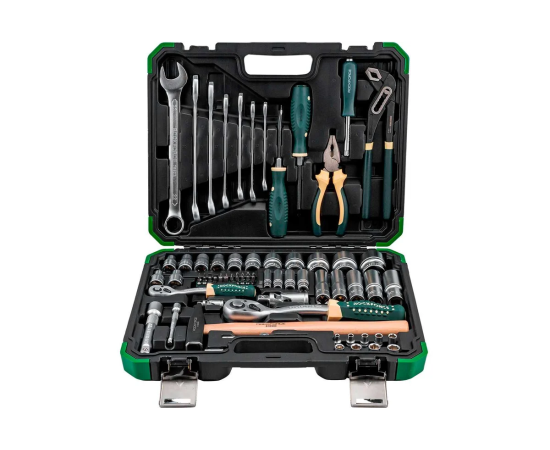 Набор инструментов Rockforce — это профессиональный комплект, состоящий из 74 предметов, который станет незаменимым помощником для любого автолюбителя и мастера. Все необходимые инструменты для обслуживания, ремонта и диагностики автомобилей, мотоциклов, велосипедов и другой техники упакованы в удобный кейс.