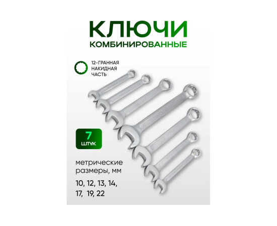 Комбинированные ключи, мм: 10, 12, 13, 14, 17, 19, 22