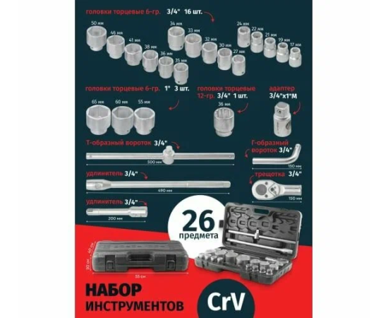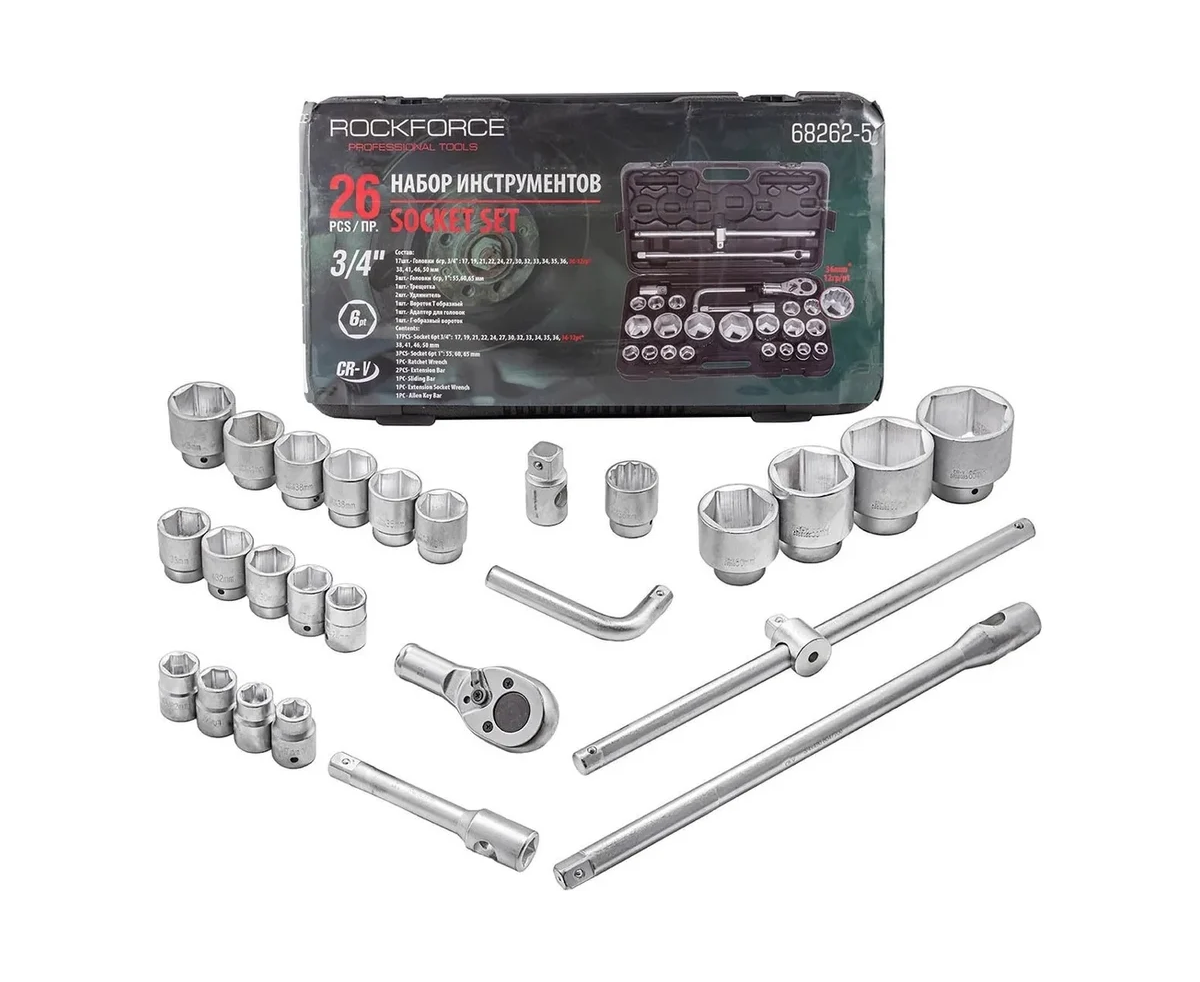 Набор инструментов ROCKFORCE RF-68262-5(51641) 26пр, 3/4" 1"