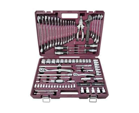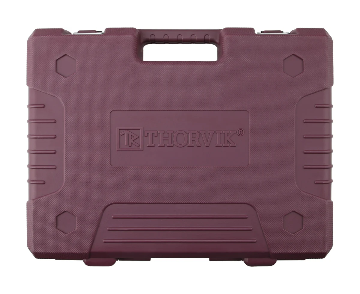 Инструментальные наборы Thorvik - это высокое качество изделий, входящих в состав наборов, удобные прочные кейсы для хранения, оптимальная комплектация позволяющая удовлетворить потребность мастера при обслуживании техники и обеспечить всем необходимым рабочее место при производстве комплексных слесарно-монтажных или механосборочных работ. Наборы Thorvik имеют ударопрочный морозоустойчивый кейс с надежными металлическими замками, фосфатированное покрытие вставок бит обеспечит дополнительную стойкость к коррозии. Область применения. Инструменты, представленные в наборе применяются при проведении работ связанных с обслуживанием изделий точной механики, электроники и бытовой техники, где рабочая зона ограничена и отсутствуют серьезные нагрузки. При производстве работ по обслуживанию автомобильной техники, благодаря небольшим размерам, набор незаменим для арматурных работ, ремонта и установки малых агрегатов и навесного оборудования двигателей.