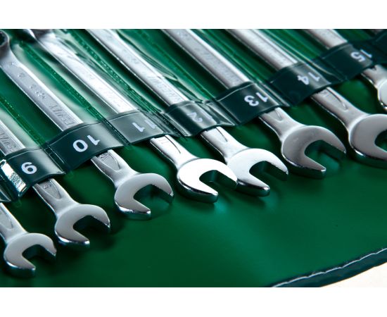 Комбинированные ключи, входящие в данный набор выполнены из прочной стали для надежной и долговременной эксплуатации.