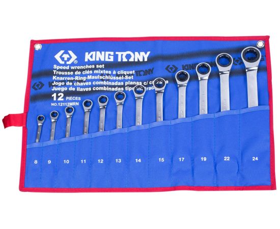 Набор ключей комбинированных KING TONY 12112MRN трещоточных 8-24 мм, чехол из теторона, 12 предметов