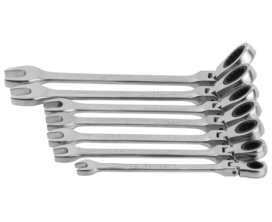 - Набор комбинированных трещоточных ключей с шарниром Rockforce 7пр. RF-51072F(46764) отличается антикоррозийностью