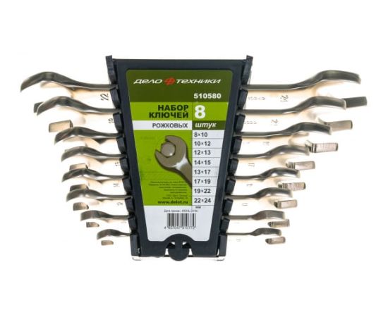Набор ключей рожковых Дело Техники 510580 8 шт. 8x10, 10x12, 12x13, 14x15, 13x17, 17x19, 19x22, 22x24 пластик. холдер ДТ/20