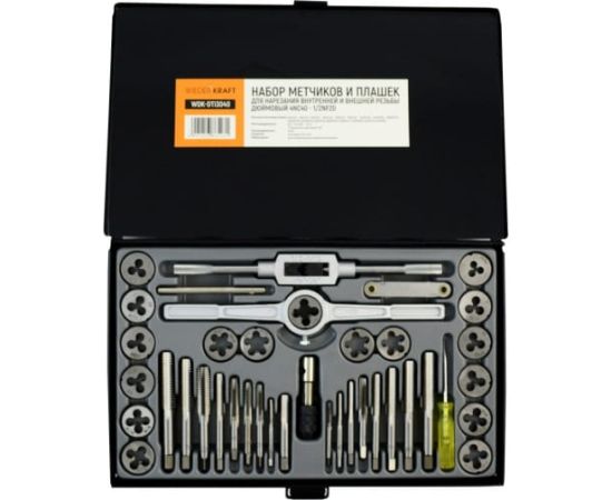 Набор метчиков и плашек WIEDERKRAFT 4NC40-1/2NF20 (WDK-DTI3040), 40 предметов, дюймовая резьба
