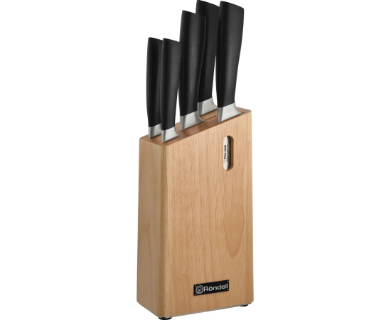 Набор ножей кухонных Rondell Caroling RD-1878 компл. 6предм. с подставкой черный подар.коробка