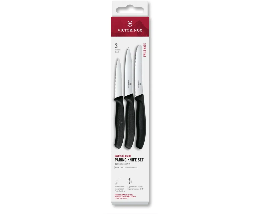 Набор ножей кухонных Victorinox Swiss Classic 6.7113.34 для овощей компл. 3предм. черный европодвес