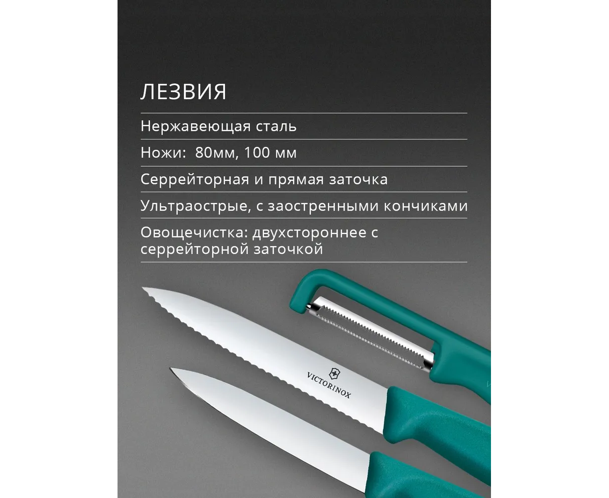 Набор ножей кухонных Victorinox Swiss Classic 6.7114.33C1 для овощей компл. 3предм. овощеч. зеленый европодвес
