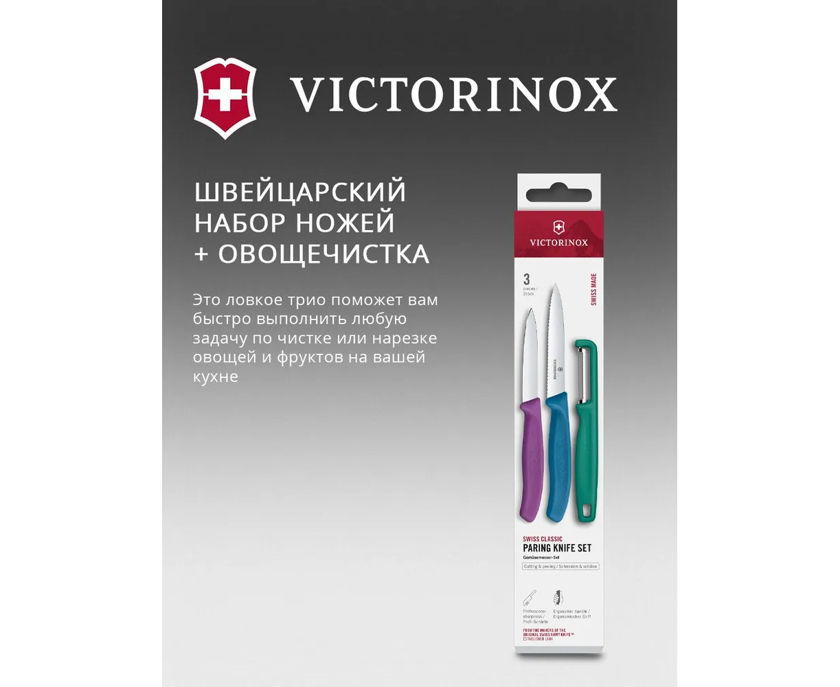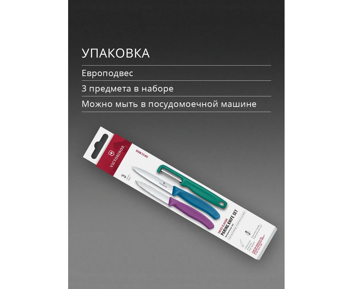 Набор ножей кухонных Victorinox Swiss Classic 6.7116.33C1 для овощей компл. 3предм. овощеч. ассорти европодвес