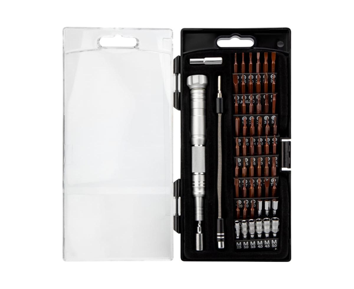Отвертка с битами для точных работ отлично подходит для ремонта телефонов, компьютеров, приемников и для многих популярных приборов, которые используются в быту. Выполнен из качественной инструментальной стали S2, обладающей высокой прочностью к механическим повреждениям.