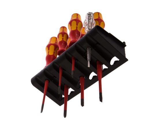 Набор отверток предназначен для монтажа и демонтажа резьбовых соединений. Инструменты выполнены из инструментальной стали. Для безопасности работы под напряжением до 1000 В предусмотрена изоляция. Для удобства хранения набор поставляется в комплекте с пластиковой подставкой.