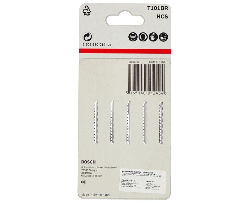 Набор пилок по дереву Bosch T101BR HCS 5пред. (лобзики)