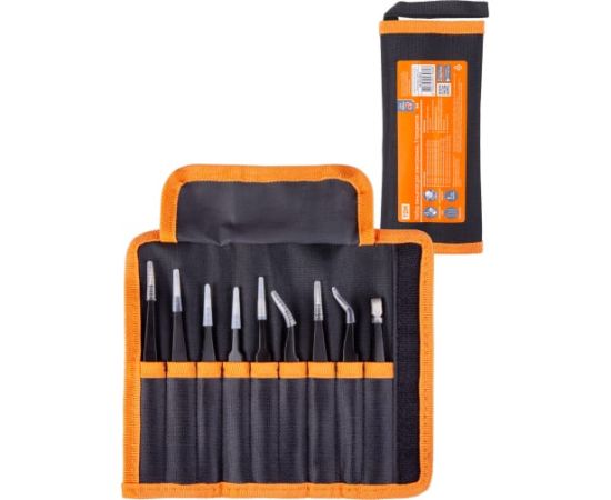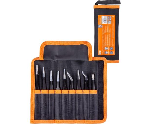Набор пинцетов для электроники TDM 9 предметов, нержавеющие, антистатика, тканевый чехол, Рубин SQ1025-0810 поставляется в удобном и прочном чехле. Он надежно закрывает инструмент, защищает его от выпадения. Подходит для электронщиков и ювелирных работ.
