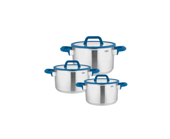 Набор посуды LARA Сапфир (2.0л + 3.5л + 6.2л) капсулированное индукционное дно. крышки