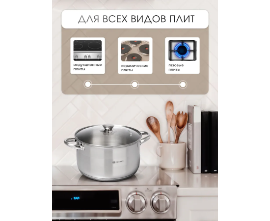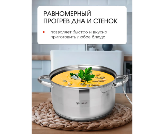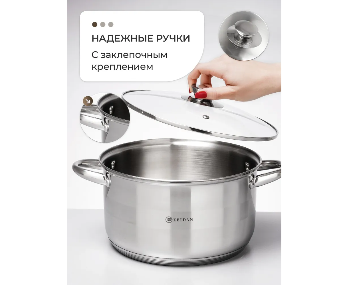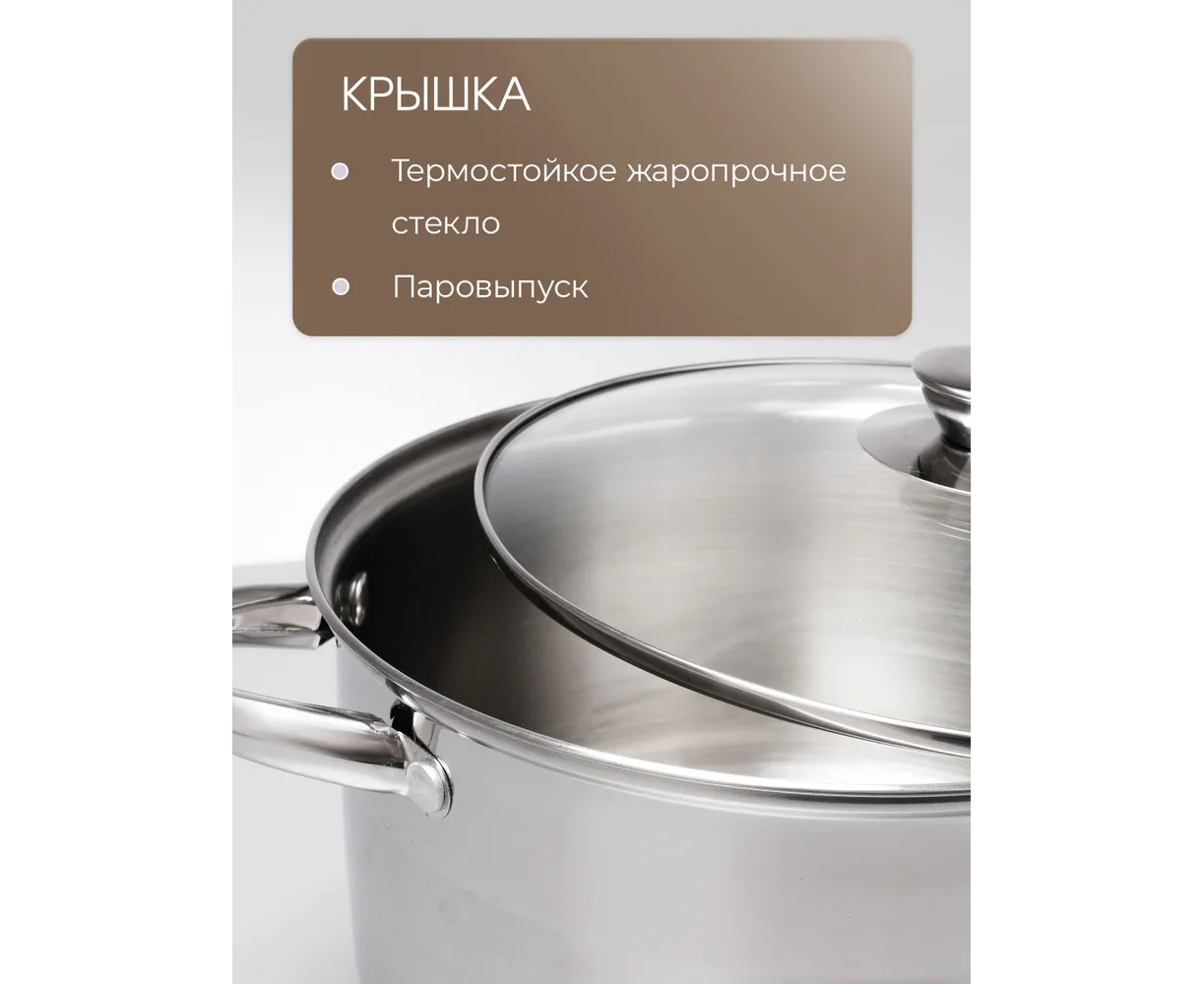 Особенности посуды: Крышка в комплекте, Можно мыть в посудомойке, С толстым дном, Жаропрочная, Ненагревающиеся ручки