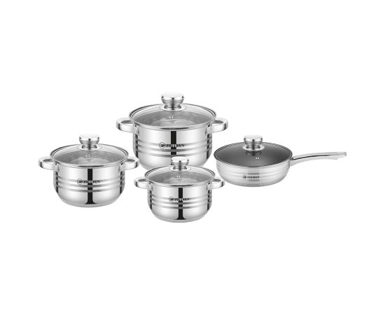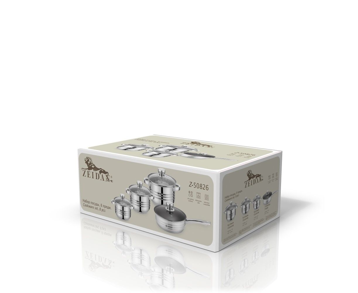 Набор посуды ZEIDAN Z-50826 8 предметов 3 кастрюли с крышками, сковорода