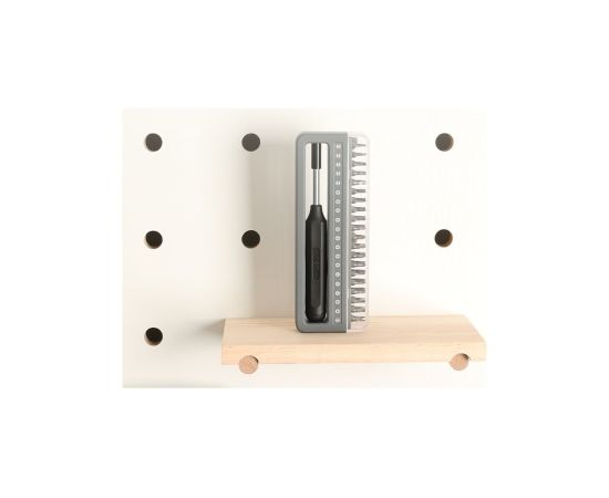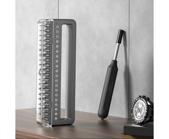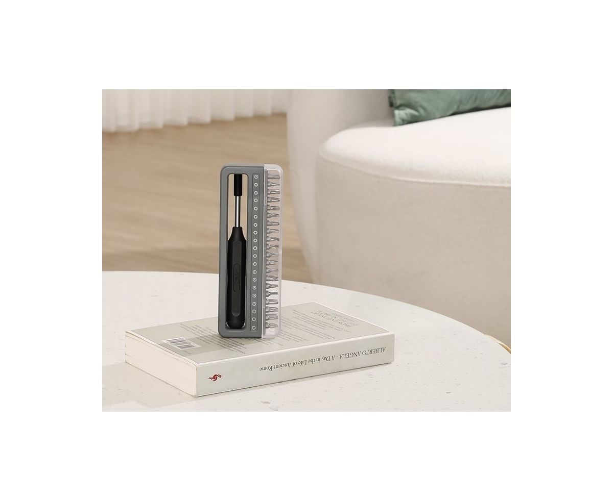 Он включает в себя саму отвертку и целых 40 бит различного типа к ней, что обеспечивает широкий выбор инструментов для разного типа винтов.