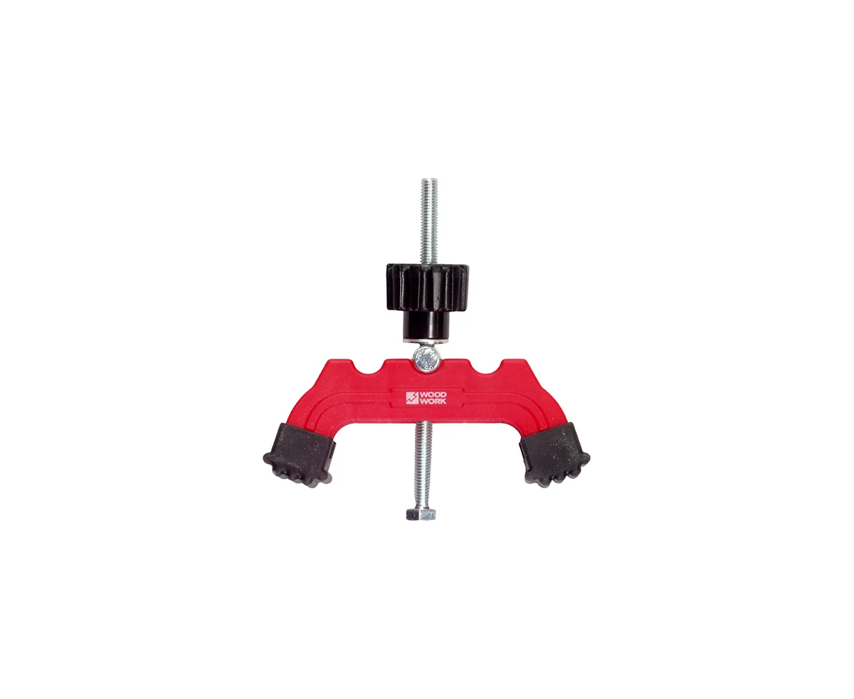 Зажим CLM-007 WOODWORK имеет пару плоских поворотных ножек, покрытых формованной резиной, что позволяет оказывать равномерное целенаправленное давление для фиксации заготовки, не повреждая ее поверхность