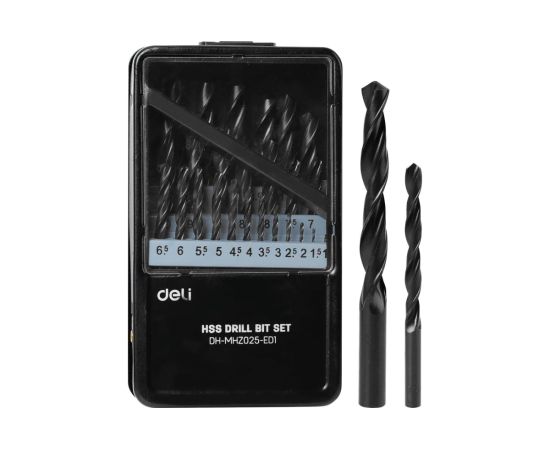 Набор сверл по металлу DELI hss DH-MHZ025-ED1 (112193) 1-13мм(1-13мм, 25шт) металлический кейс 112193