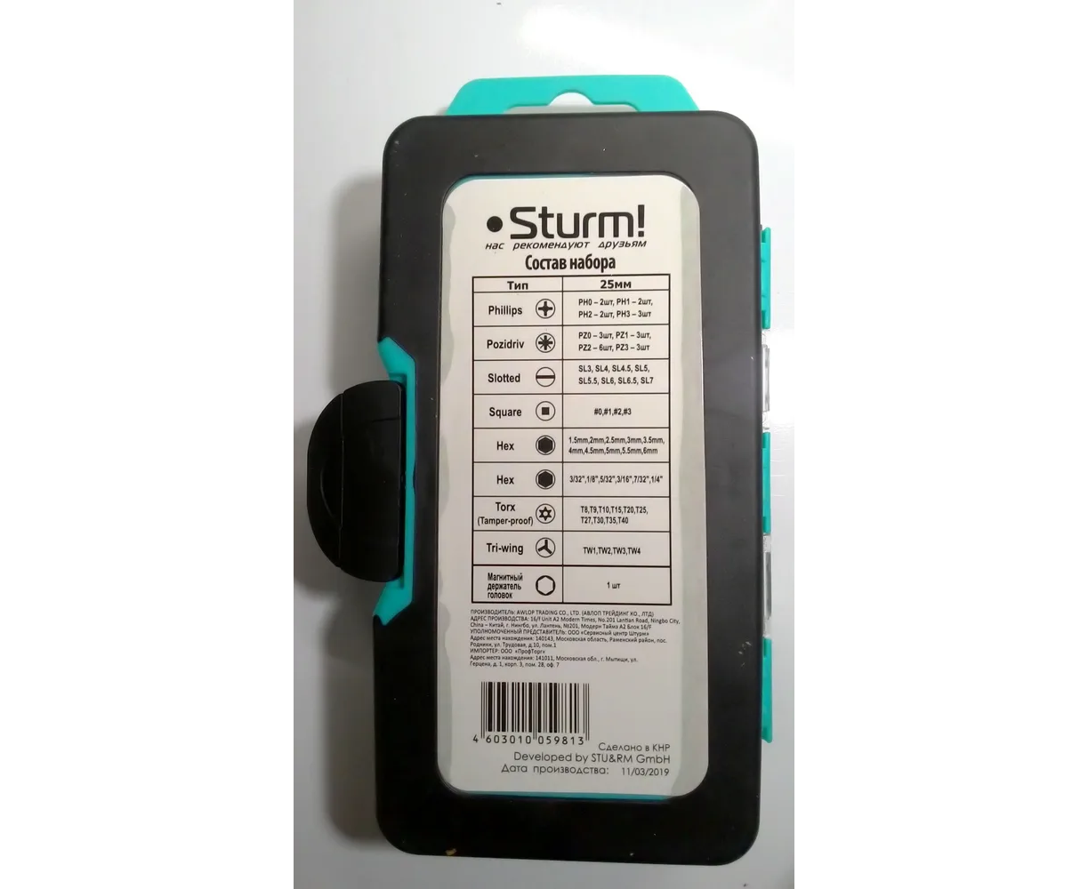Технические характеристики набора бит Sturm 1270602