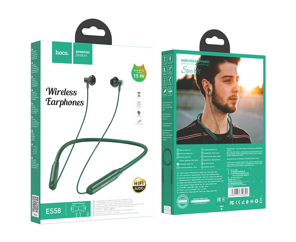 Наушники bluetooth HOCO ES58 Sound tide sports (темно-зеленый)