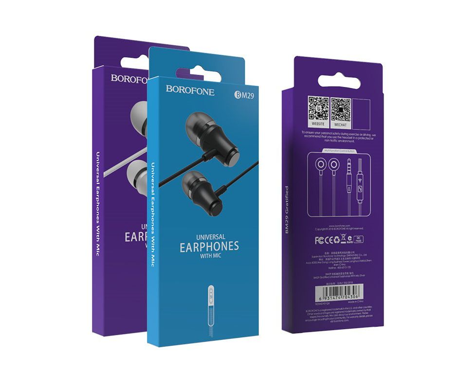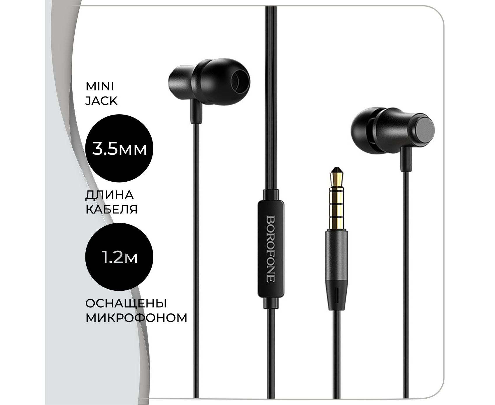 Наушники BOROFONE BM29 Gratified Universal earphones with mic (чёрный)