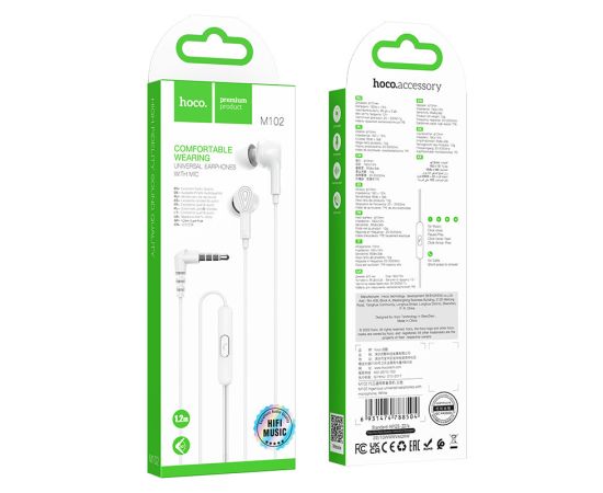 Наушники Hoco M102 Ingenious universal earphones with microphone , Белый