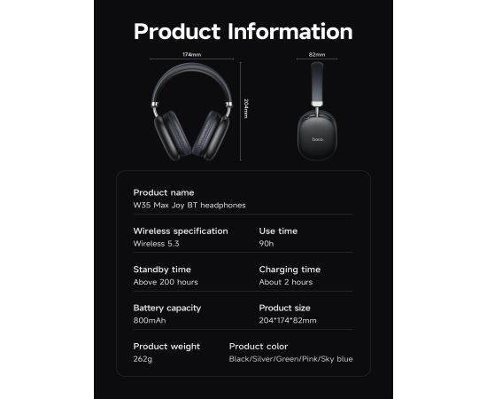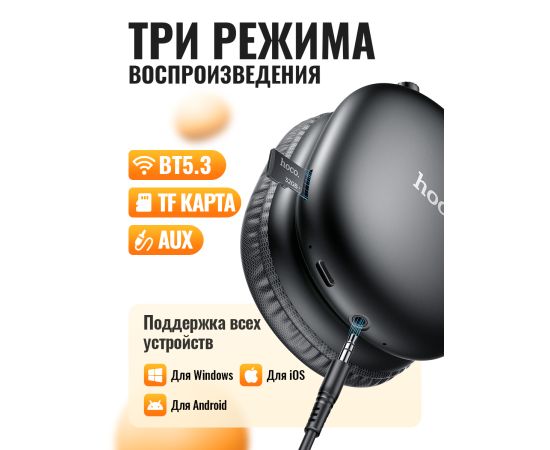 Наушники полноразмерные bluetooth HOCO W35 Max Auspicious ANC noise reduction BT headphones (черный)