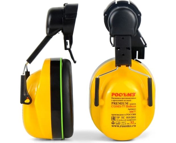 Противошумные наушники с креплением на защитной каске РОСОМЗ СОМЗ-77 Победа 60677 используются для защиты от шума с умеренным уровнем во всех отраслях промышленности.