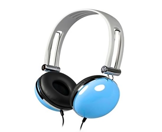Корпус оголовья выполнен из пластика белого цвета с металлическим хромированным подвесом излучателей. Корпус излучателей выполнен из голубого пластика с глянцевым покрытием и хромированными ободками. Отделка амбушюров выполнена из мягкой кожи с поролоновым наполнителем. Крепление шнура - двух стороннее. Отдельный выносной микрофон. Регулятор громкости на шнуре.