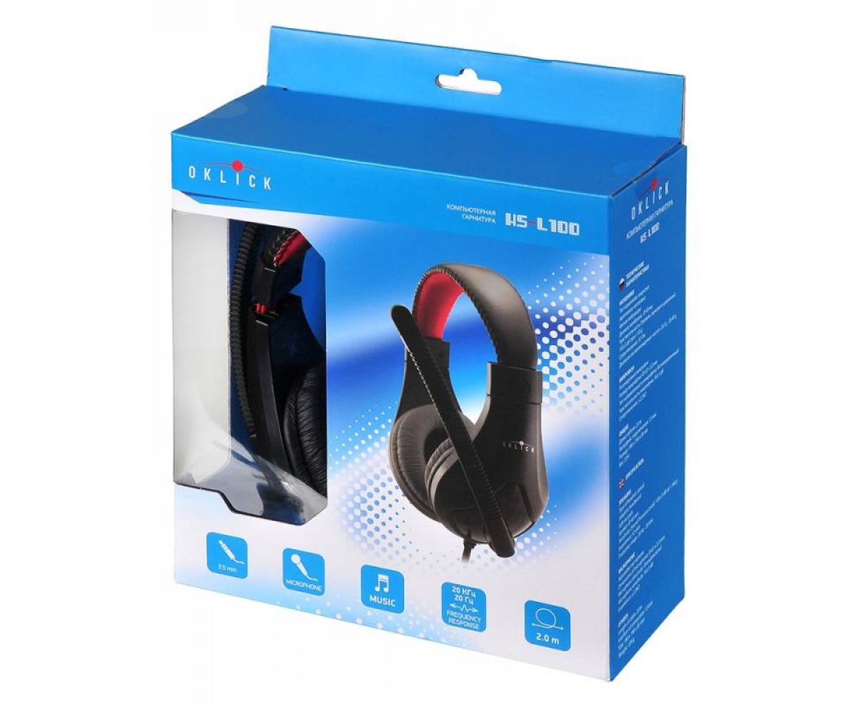 Наушники с микрофоном Oklick HS-L100 черный/красный (NO-530)