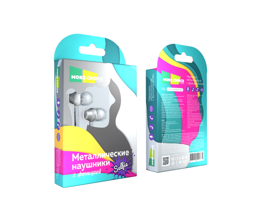 Наушники вакуумные AUX разъём с МК и рег.громкости длина 1.2м More Choice P61 (White Silver)