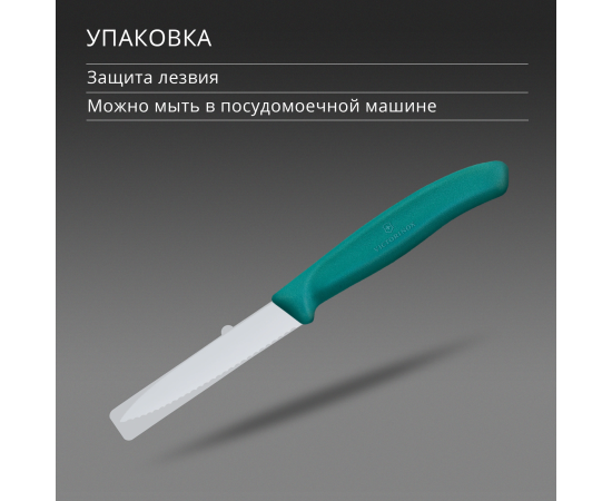 Нож кухонный Victorinox Swiss Classic 6.7634.C1 для чистки овощей и фруктов лезв.80мм серрейт. заточка зеленый