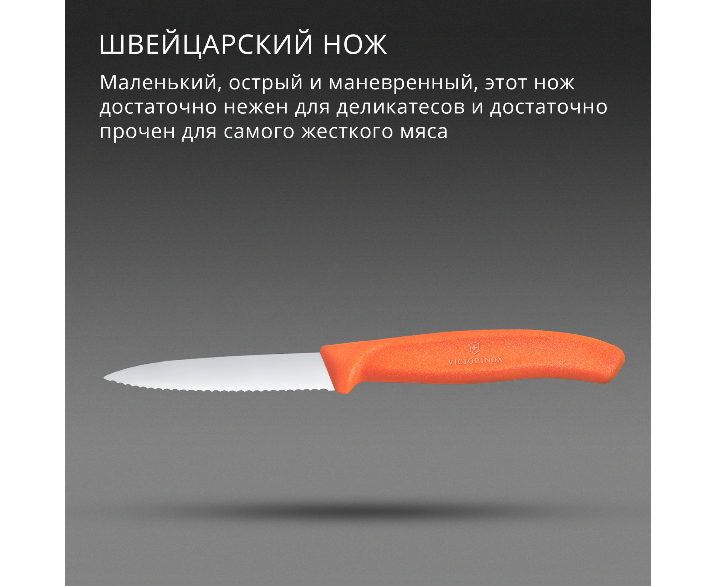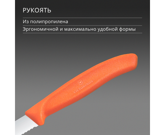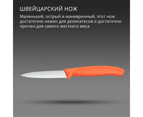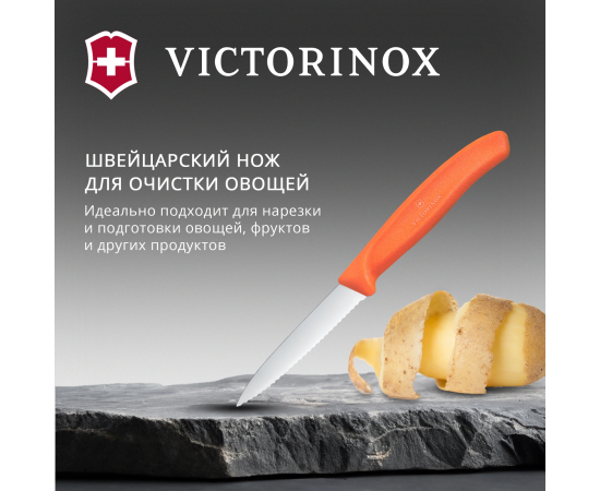 Нож кухонный Victorinox Swiss Classic 6.7639.C1 для чистки овощей и фруктов лезв.80мм серрейт. заточка оранжевый