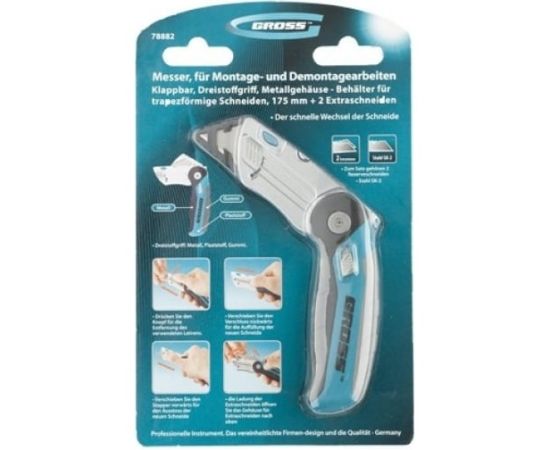 Нож ремонтно-монтажный складной GROSS 78882 175мм трехкомпонентная рукоятка, 2 зап.лезвия