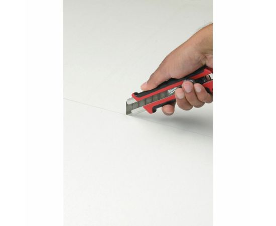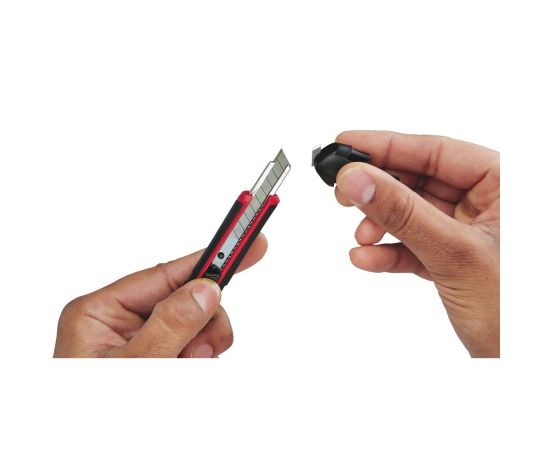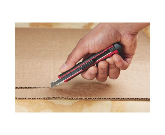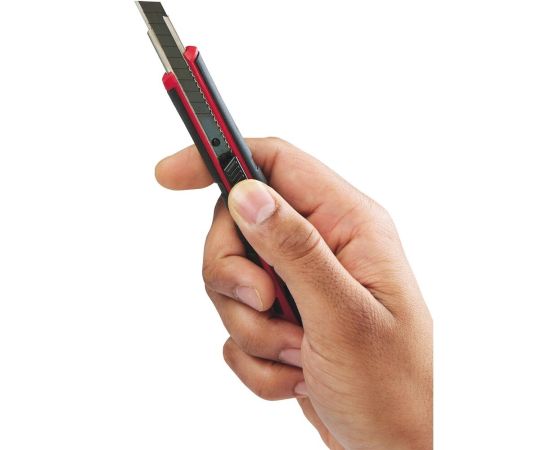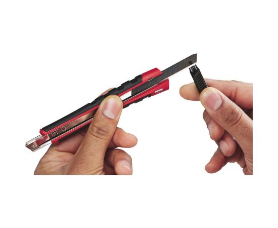Нож для картона 9мм Milwaukee 48221960 обладает неболшими размерами и узким лезвием. Это позволяет резать мягкие материалы по любому профилю. Обрезиненная рукоятка защищает инструмент от ацетона и препятствует выскальзыванию из мокрых ладоней.