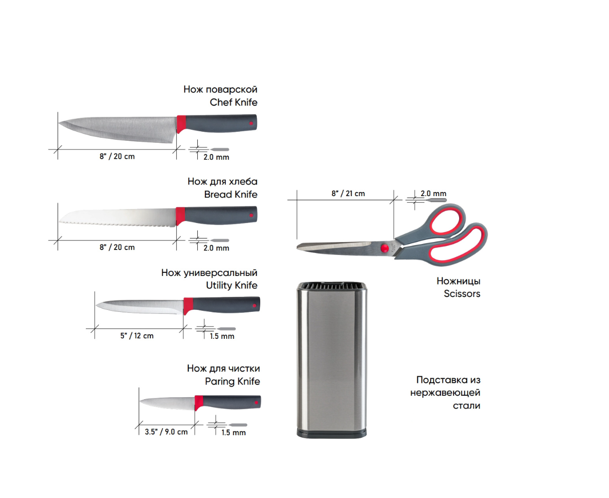 Технические характеристики набора ножей