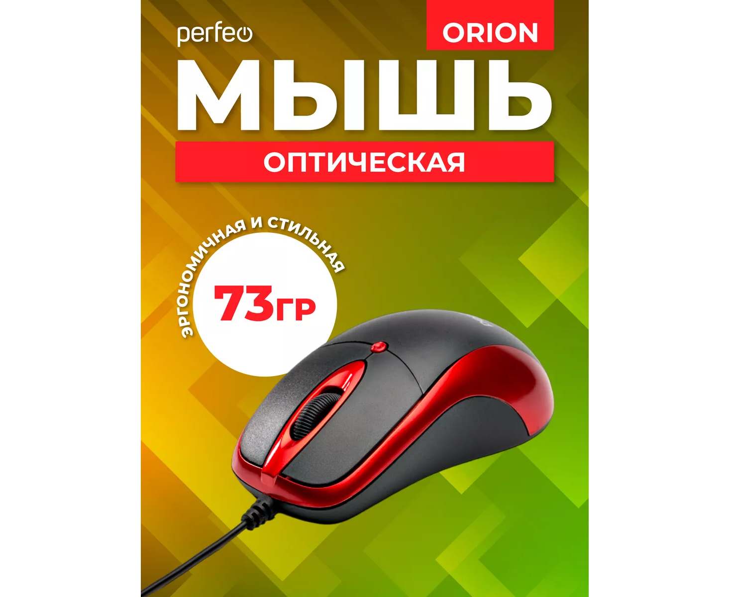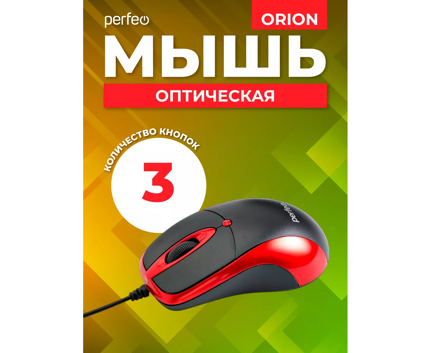 Оптическая мышь Perfeo "ORION", 3 кн, DPI 1000, USB, чёрный/красный, (Арт. PF_A4794)