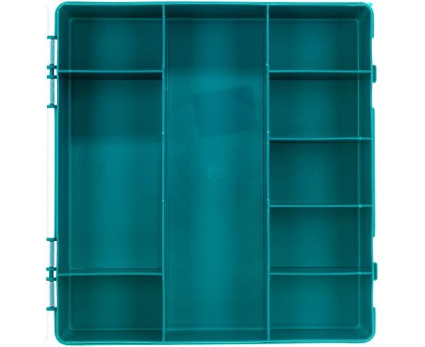 Органайзер изготовлен из прочного пластика и имеет 9 отделений для хранения различных инструментов и аксессуаров. В нем можно хранить отвертки, гаечные ключи, молотки, пилы, плоскогубцы, сверла, ножи и многое другое.