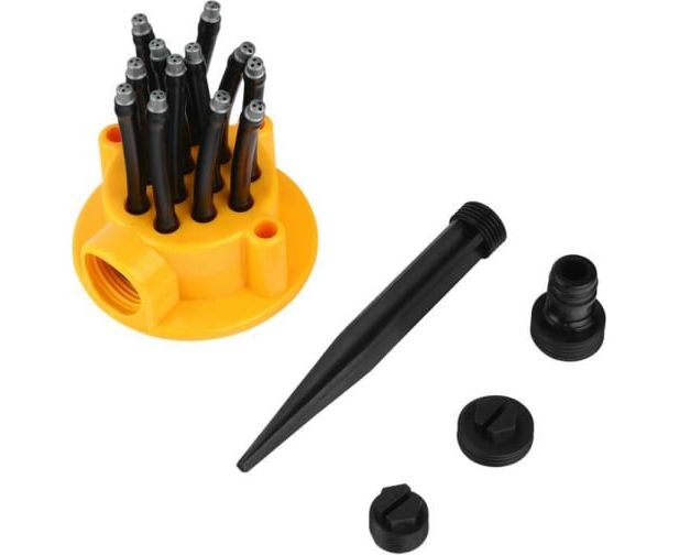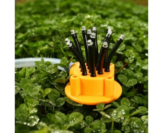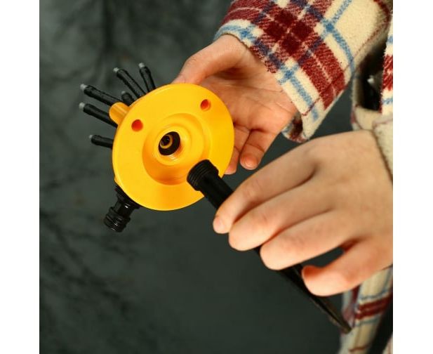 Сопла автоматически вращаются на 360°, а диаметр полива варьируется от 2 до 10 метров, что обеспечивает быстрый и обильный полив.