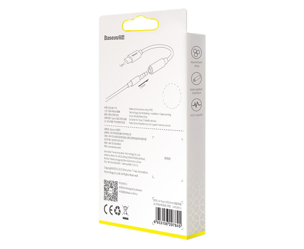 OTG переходник Baseus L54 Type-C Male to 3.5mm Female тёмно-серый