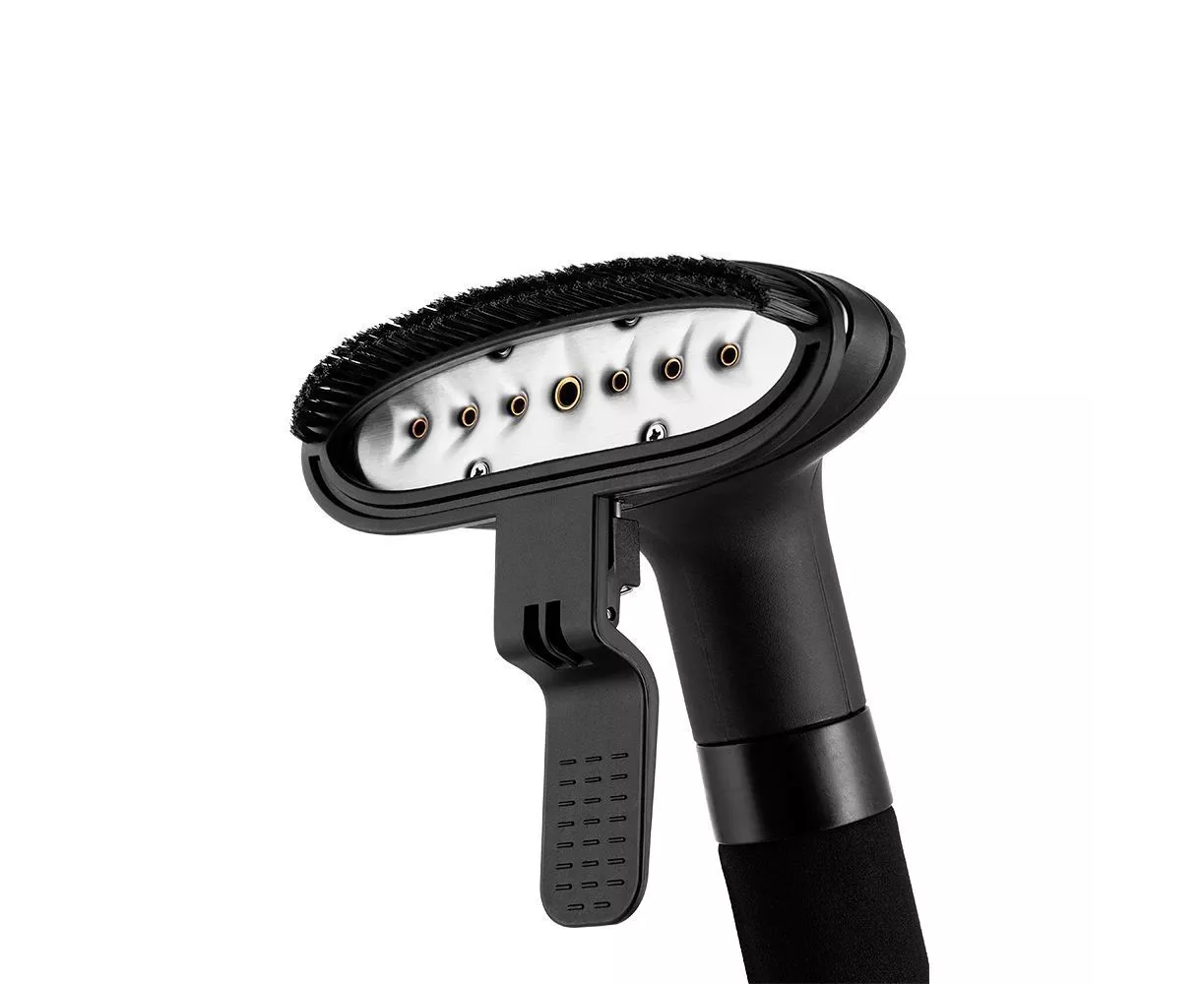 При необходимости можно установить ворсовую насадку-зажим. Ворсовая щётка справится с очисткой ткани, мягкой мебели от шерсти, пыли, волос и ворса. Зажим можно использовать для отпаривания брюк.