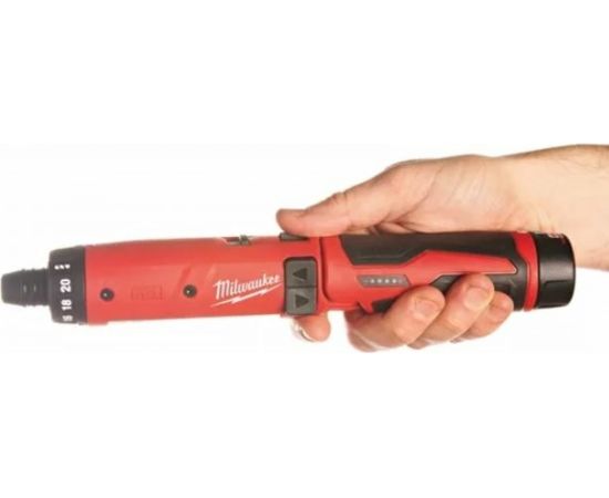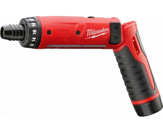 На корпусе аккумуляторной отвёртки Milwaukee M4 D-202B 4933440475 есть кольцо регулировки крутящего момента, которое даёт возможность быстро и просто выставлять необходимое для работы значение.
