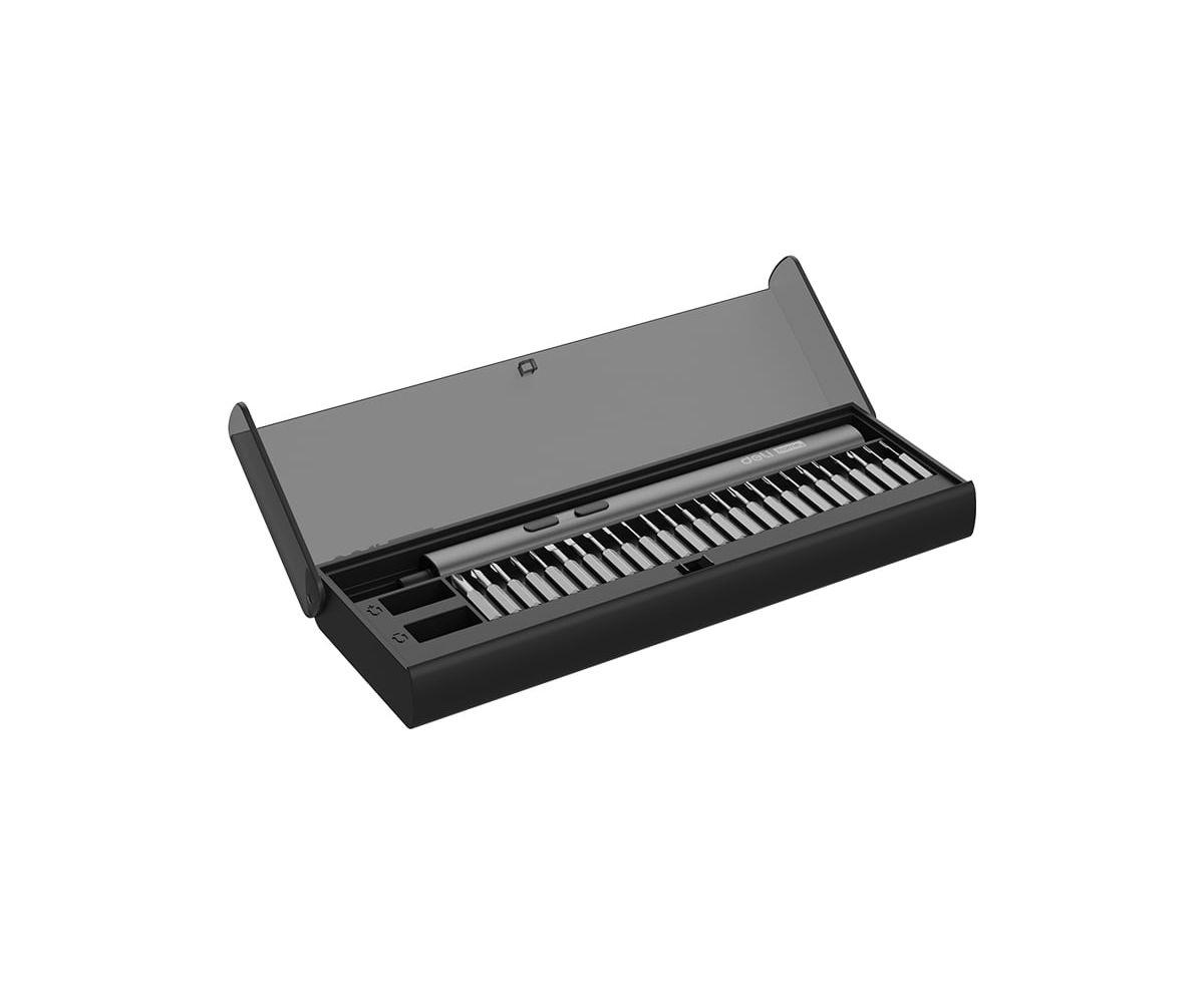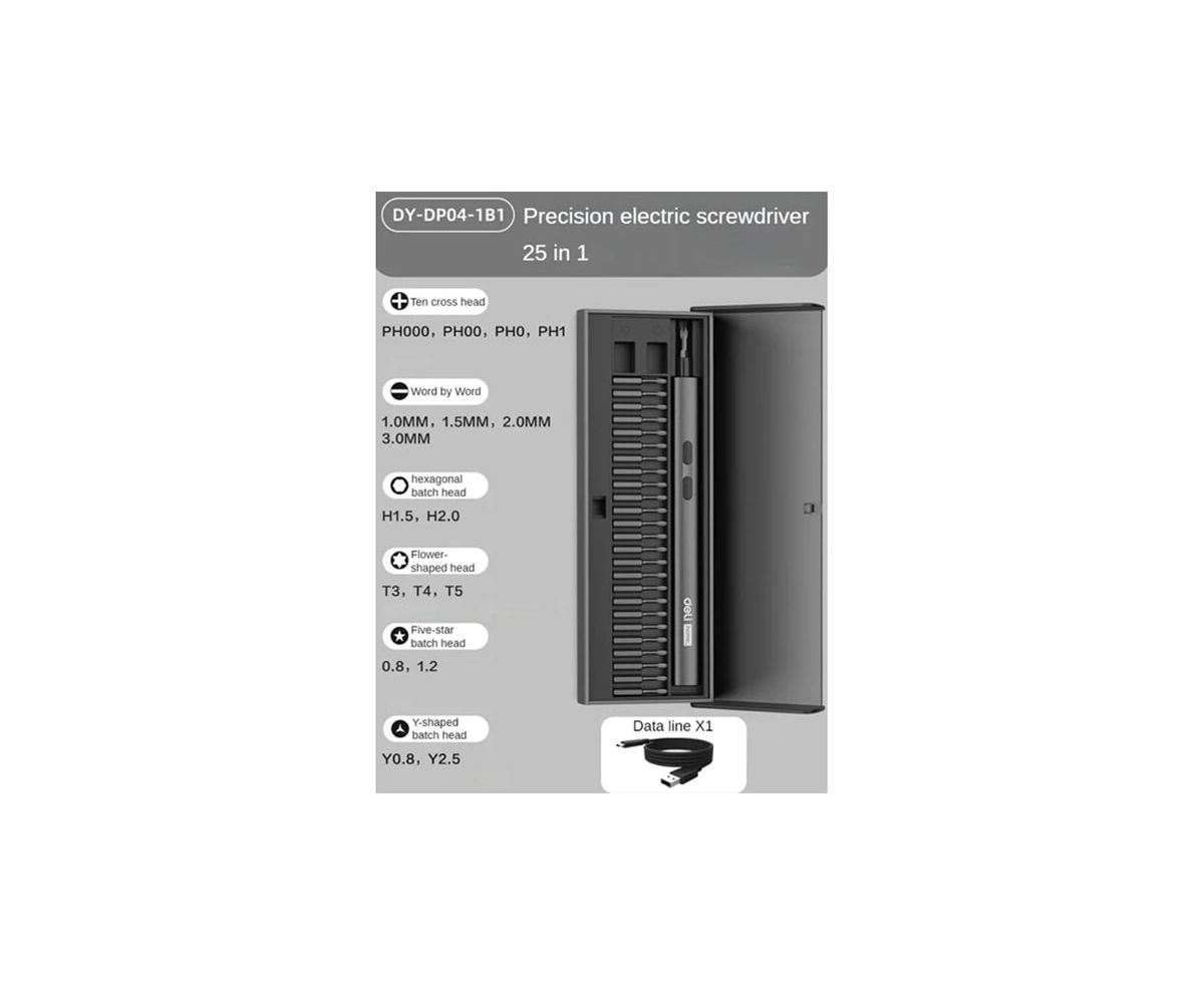 Отвертка аккумуляторная прецизионная Deli Home series Black (DY-DP04-1B1) 3,7В, 260мА*ч, 0,2/3Нм, 200об/мин, Type-C, набор бит 25 шт, кейс